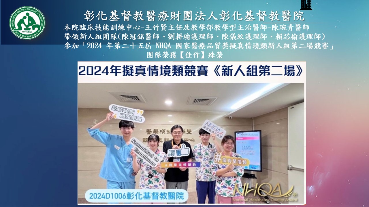 2024年本院參加醫策會第25屆擬真情境類競賽,新人組第二場榮獲佳作殊榮。