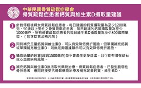 【中華民國骨質疏鬆症學會 骨質疏鬆症患者鈣質與維生素D攝取量建議】