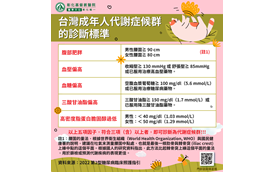 我們常常聽到代謝症候群,而台灣成人代謝症候群的診斷標準又是哪些呢?