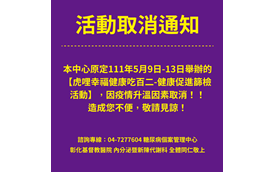 本中心原定111年5月9日-13日舉辦的【虎哩幸福健康吃百二-健康促.....