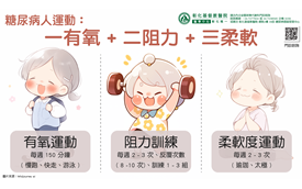 體能活動在糖尿病生活型態的調整中佔重要角色,坐式生活增加了罹患第2 型糖尿病的