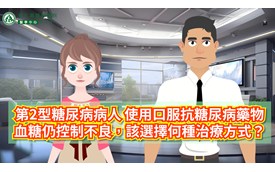 當第2型糖尿病病人-使用口服降血糖藥物血糖仍控制不良,該選擇何種治療方式?