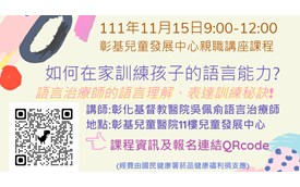 彰化基督教兒童醫院兒童發展中心111年度親職講座課程