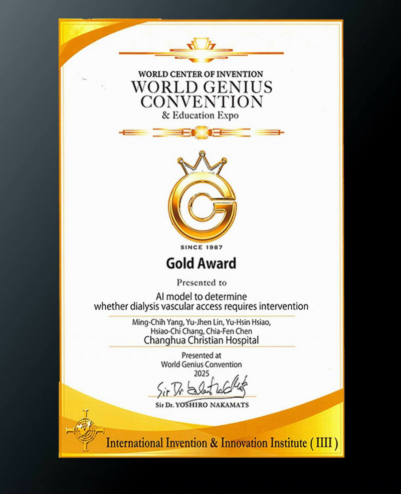恭賀「洗腎血管通路阻塞輔助判定系統」榮獲2025年日本「創新天才國際發明展」發明金獎殊榮