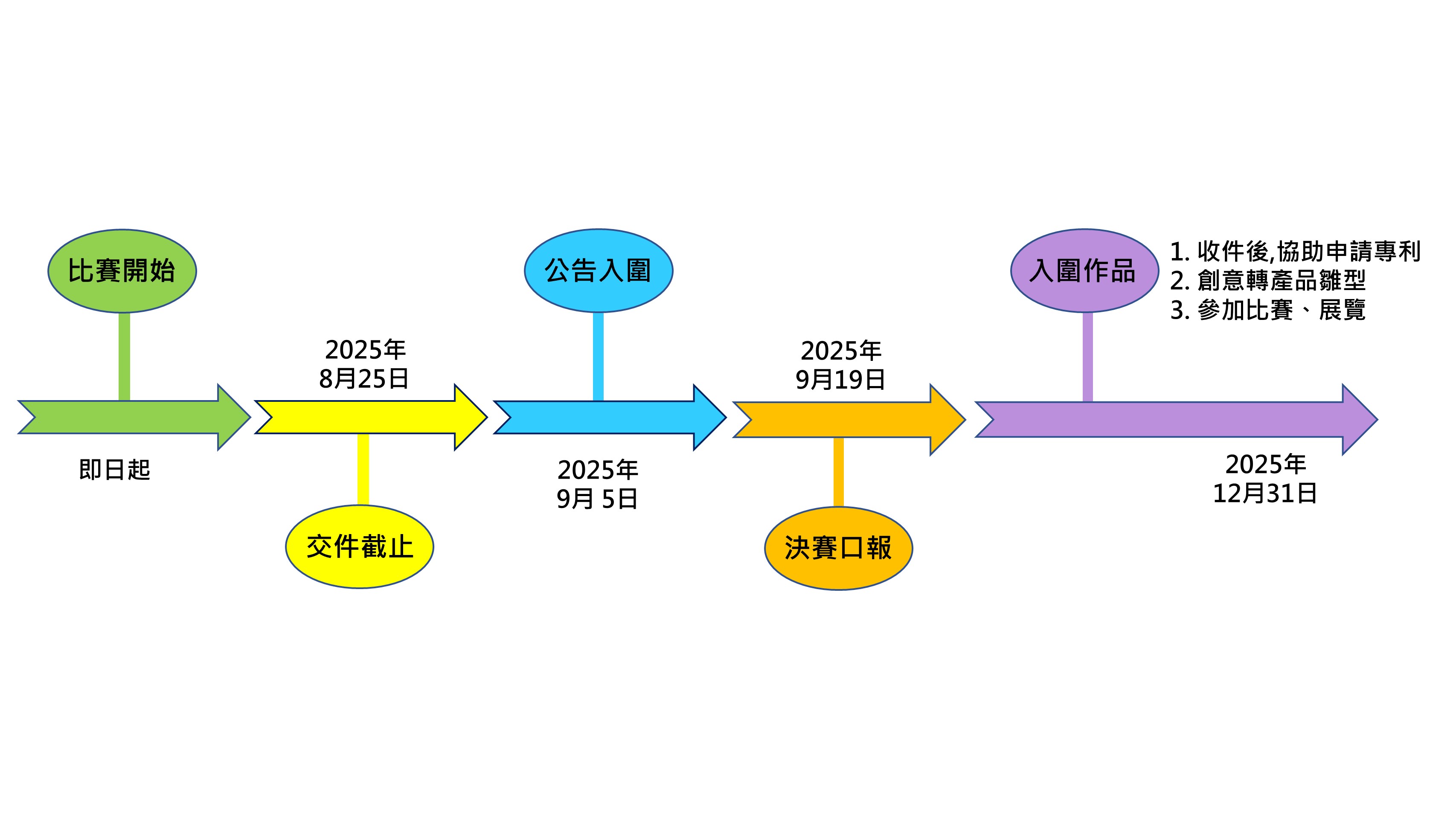 初選交件:自公告日起~2025年8月25日 ,繳交下列文件,報名表,創作品說明書及同意書。