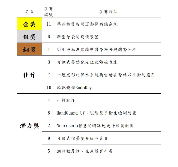 入圍即是對團隊創意的肯定,得獎更是難能可貴,以下是今年的名次公告