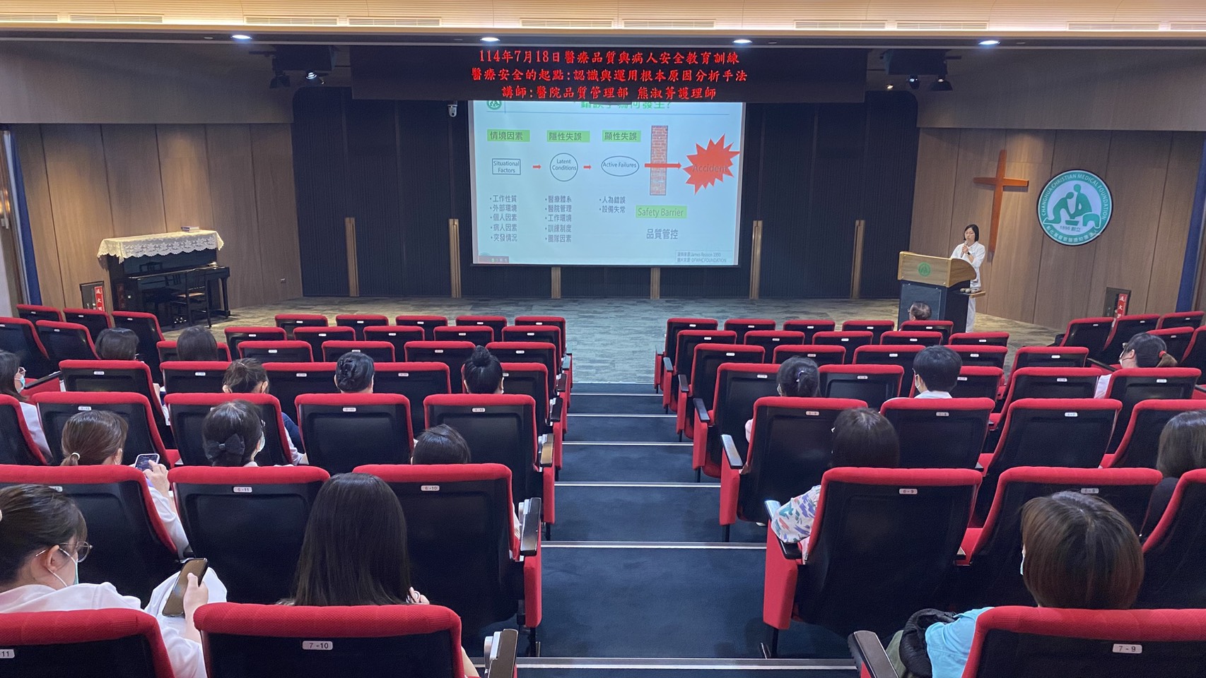 2025年7月18日醫品部舉辦病人安全教育訓練,由彰化基督教醫院醫院品質管理部熊淑菁護理師主講「醫療安全的起點:認識與運用根本原因分析手法」。本課程旨在協助臨床醫護人員建立正確的病人安全觀念,並了解根本原因分析(RCA)在醫療安全事件中的應用。課程從病人安全「首要不傷害」的理念出發,透過瑞士乳酪模型與冰山理論說明醫療事件背後可能存在的顯性與隱性因素,強調以系統思維取代個人責備。課程同時介紹RCA四大步驟,包括事件調查、原因分析、制定改善行動與成效追蹤,並運用時間序列分析、特性要因圖及Why Tree等工具找出問題根源。透過實務案例分享,使學員了解如何辨識潛在風險並提出改善策略,進而提升醫療照護品質與病人安全。