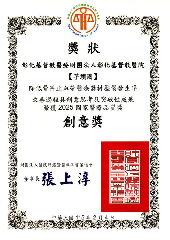 2025年國家臨床醫學教育獎_主題類 主題改善醫學中心及區域醫院組-降低骨科止血帶醫療器材壓傷發生率_創意獎