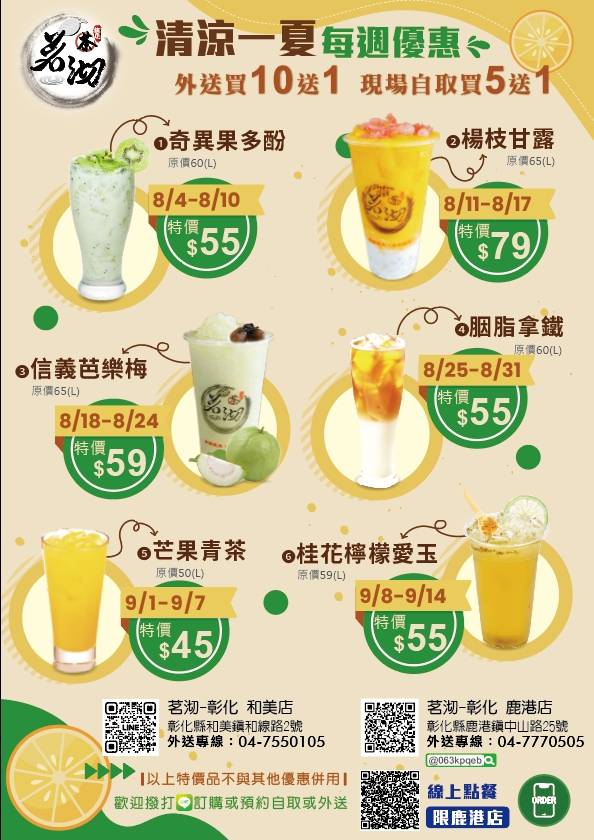 憑員工識別證優惠如下: 飲品全系列,購買滿(含)150元,折扣5元