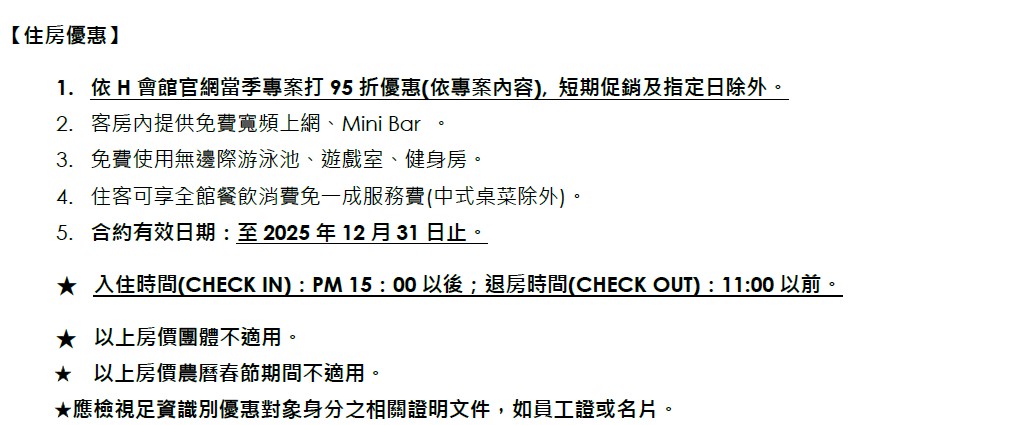 憑員工識別證優惠如下:檔案下載 訂房組專線:02-23836796