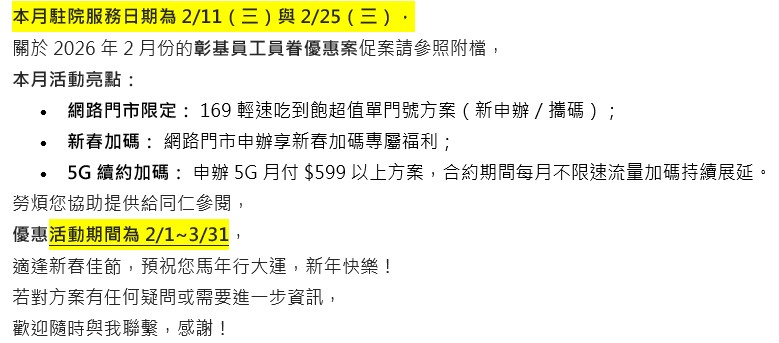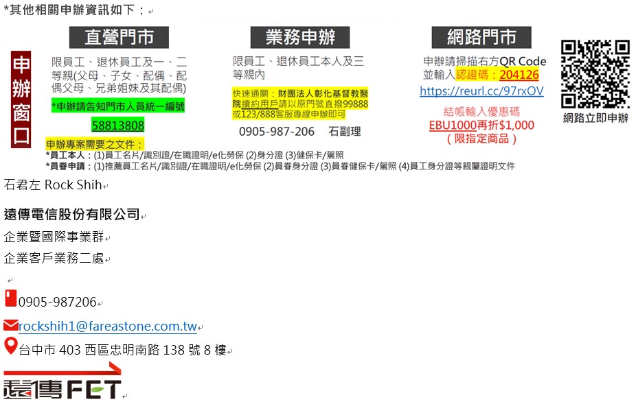 [遠傳電信專案] 財團法人彰化基督教醫院專屬特案