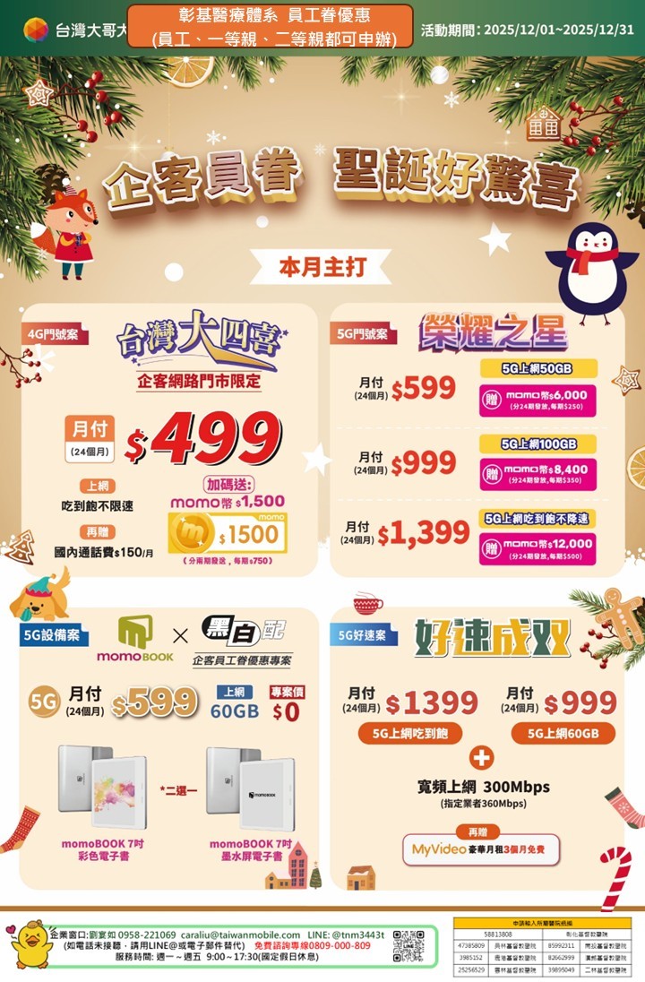 【台哥大-彰基醫療體系】企業員工眷優惠【2025年12月專案】 🌟 心繫聖誕,心願相伴✨