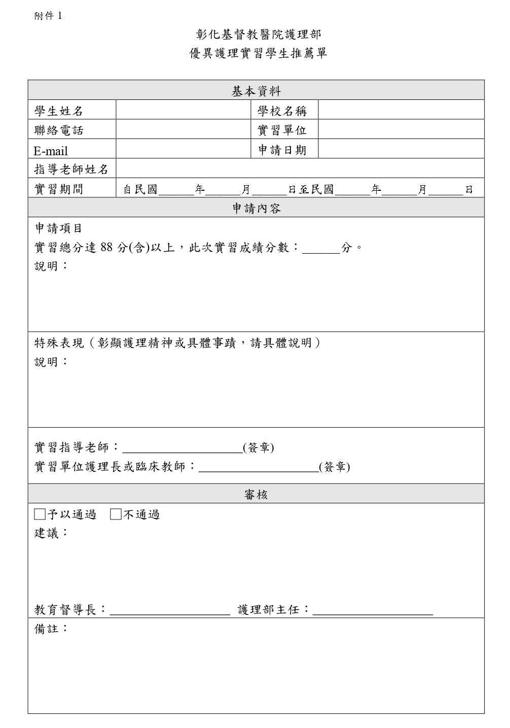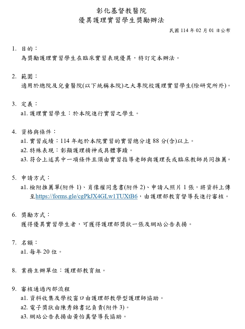 彰化基督教醫院優異護理實習學生獎勵辦法