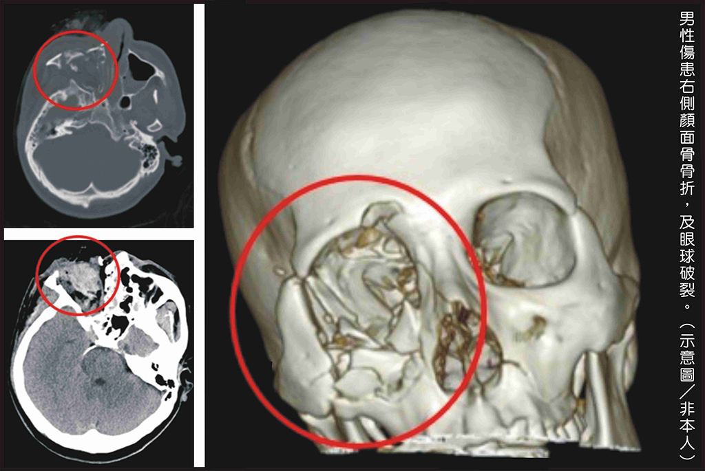 男性傷患右側顏面骨骨折及眼球破裂。(示意圖/非本人)