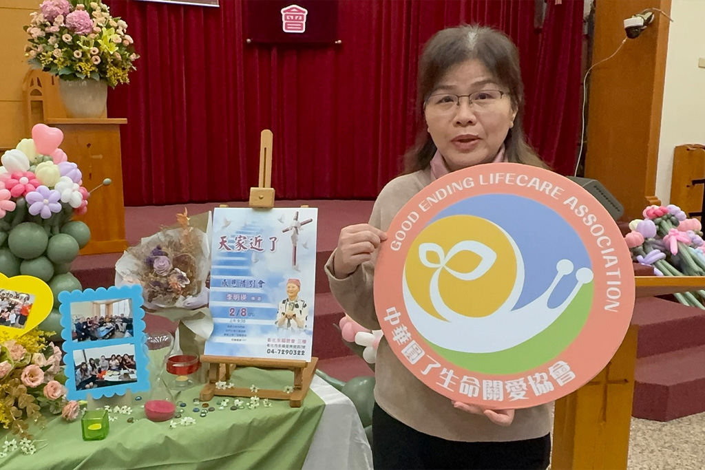 醫學中心社區健康促進組攜手彰化永福教會,為抗癌二十五年的彰化永福教會傳道李明瑛圓夢,舉辦「生前告別生命感恩惜別會」,這是她第三場,也是與家人團圓的人生最後一場「生前告別式」,用自己喜歡的方式說再見,讓愛沒有遺憾,並以實際經驗分享,啟發參與者面對「死亡」的新態度,站在它之前,看的不是「死」,而是「生」。