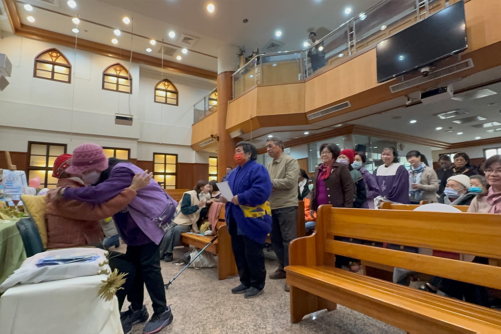 現場百多位親友見證了她以感恩、傳道的方式完成生命的最後一堂課,李明瑛與親友互相擁抱與感謝。