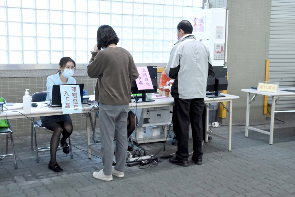 現場插卡確認防疫通行、健保卡檢核確認施打疫苗種類、劑次。