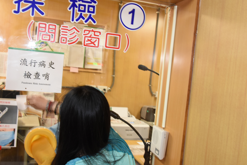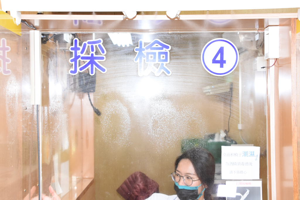 以往採檢都需要花費額外人力,請人在後面做清消動作,或是請民眾與醫護一起協助清消。
