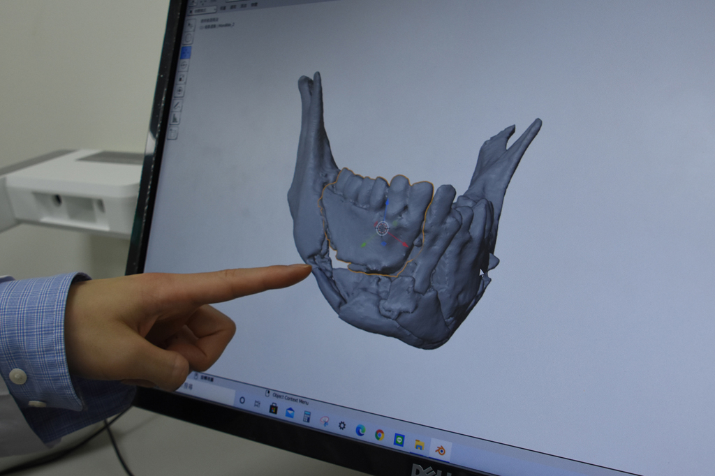 許家浚醫師透過3D模擬技術及醫療3D列印輔助,重建劉同學下顎。