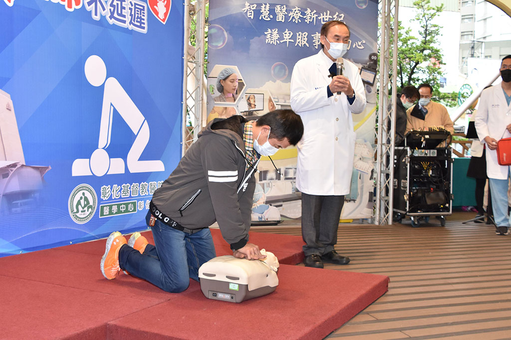 彰化縣消防局緊急救護科科長周雍華表示,王惠美王縣長為了要推廣全民CPR,特別要求消防局辦理CPR+AED的認證,今年開始和彰基等6家醫院共同合作辦理。除了平常的場次之外,還推出「定時」、「定點」的訓練場次,「定時」就是每個禮拜六的上午9點到11點,「定點」就是在彰化東區分隊,員林西區分隊、福興分隊以及埤頭分隊等4個分隊辦理,非常歡迎民眾踴躍報名,相關上課的資訊,都會公布在我們的官網上面,民眾可以到官網線上報名即可。