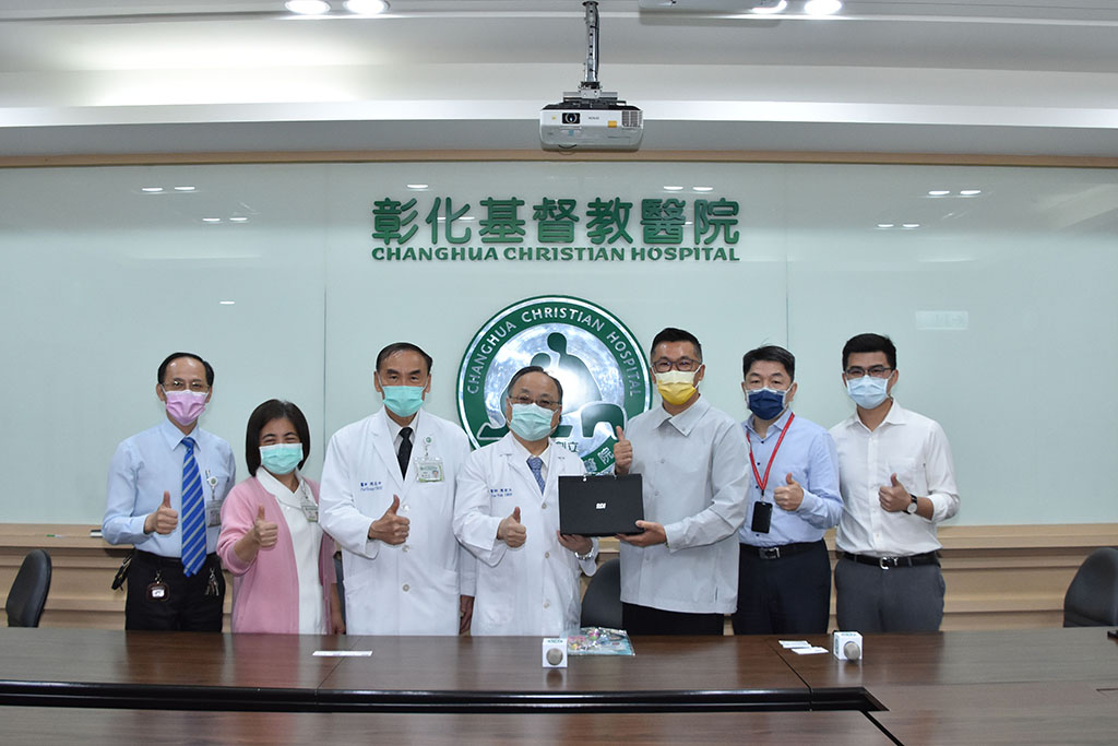 順德總經理陳維德、處長張仁和及副理張恪豪,代表公司贈送兒童節禮物,彰基醫學中心副院長周志中醫師,彰基兒童醫院院長陳家玉醫師、護理部主任賴妃珍等三人,代表院方接受充滿愛心與溫馨的禮物。
