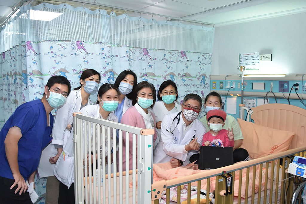 彰基兒童醫院兒科部主任王士忠醫師(前排右二)、護理部主任賴妃珍(前排右三)、護理長蔡美容(後排右二))及醫療團隊,將充滿愛心與溫馨的禮物送給小朋友。