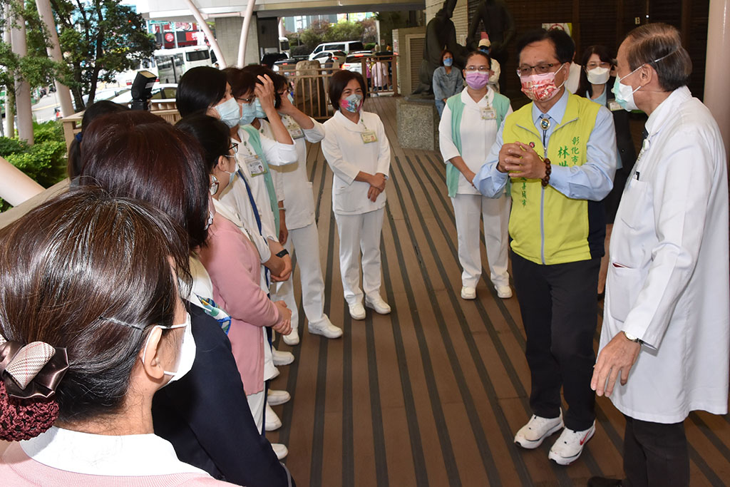 彰化市長林世賢(右二)慰勉彰基醫護人員的辛勞。