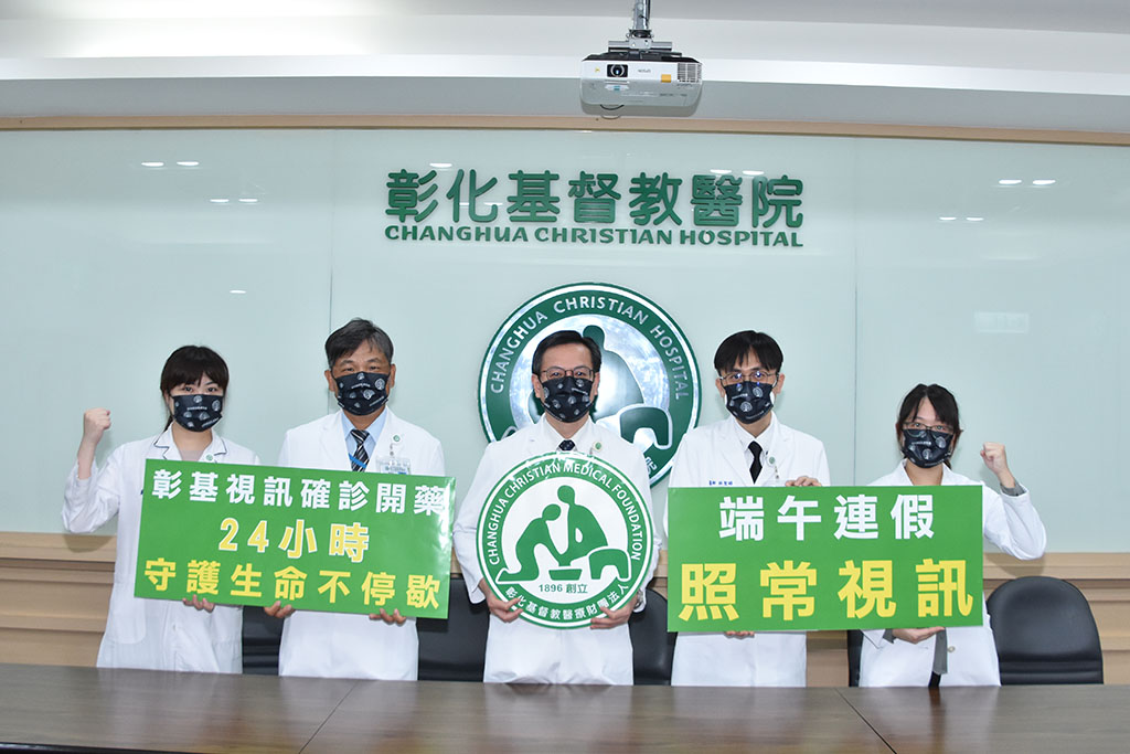 彰基為迅速給予輕症病患及時治療,加開夜間及假日視訊確診門診,端午連假期間照常視訊,彰基對抗疫情,沒有假期。