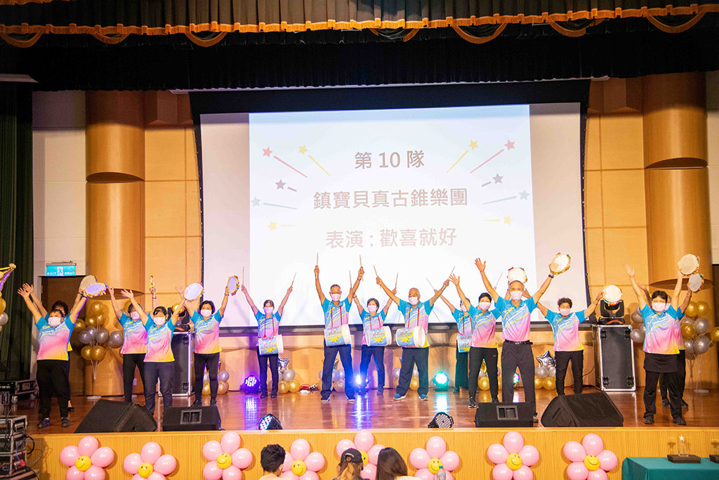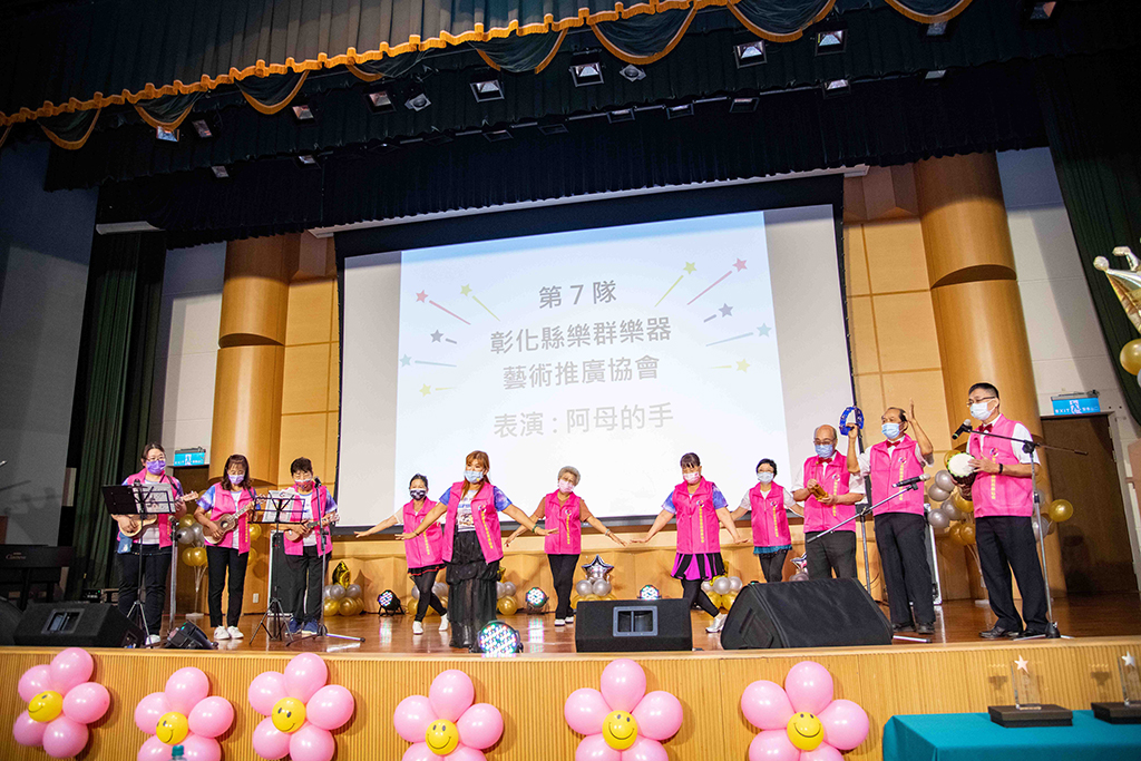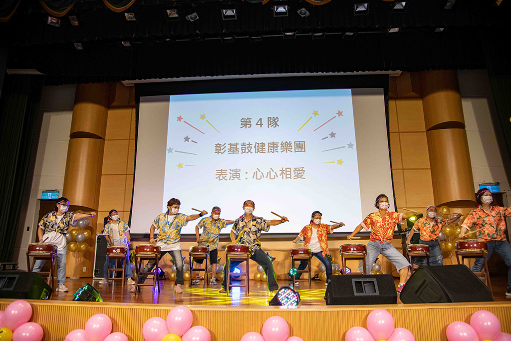 「彰基鼓健康樂團」輕快響亮、整齊劃一、青春活力的太鼓表演讓評審驚訝76歲的阿公如此年輕,108年曾上台北小巨蛋表演隊伍和美鎮平社區「鎮寶貝真古錐樂團」,運用廢棄回收的寶特瓶與油漆桶搖身一變為打擊樂器,以《歡喜就好》歌曲變化隊形敲擊節奏,刺激長者大腦活化與反應、協調能力,以愉快的心情維持身體機能,不但延緩老化,更實現自我價值。