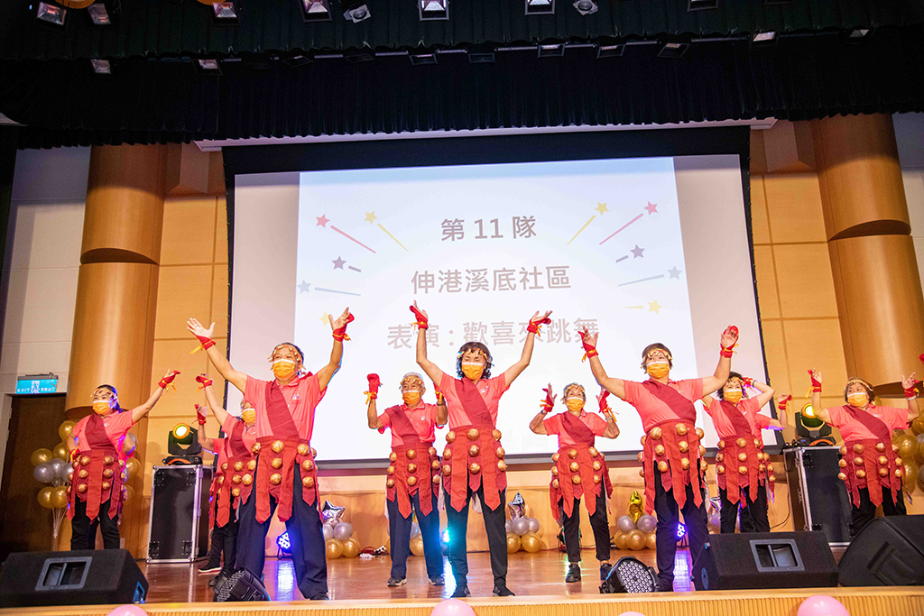 接著是由11個參賽社區隊伍一一上台進行表演,今年活動主題鼓勵身體活動,希望藉由活動鼓勵長輩多加運動,只見阿公阿嬤們,個個迫不及待上台展現平日練習成果,他們秀跳舞、拋媚眼、演奏樂器、展現美聲、發揮手做力量製作環保道具,使出渾身解數拼才藝、比熱情、展現所學,表演精彩讓人目不轉睛嘆為觀止一場接一場視、聽饗宴。透過競賽表演交流切磋,評審老師專業講評,也讓長者的表演越加精進,更加展現銀髮族活力十足「活到老學到老」的精神。