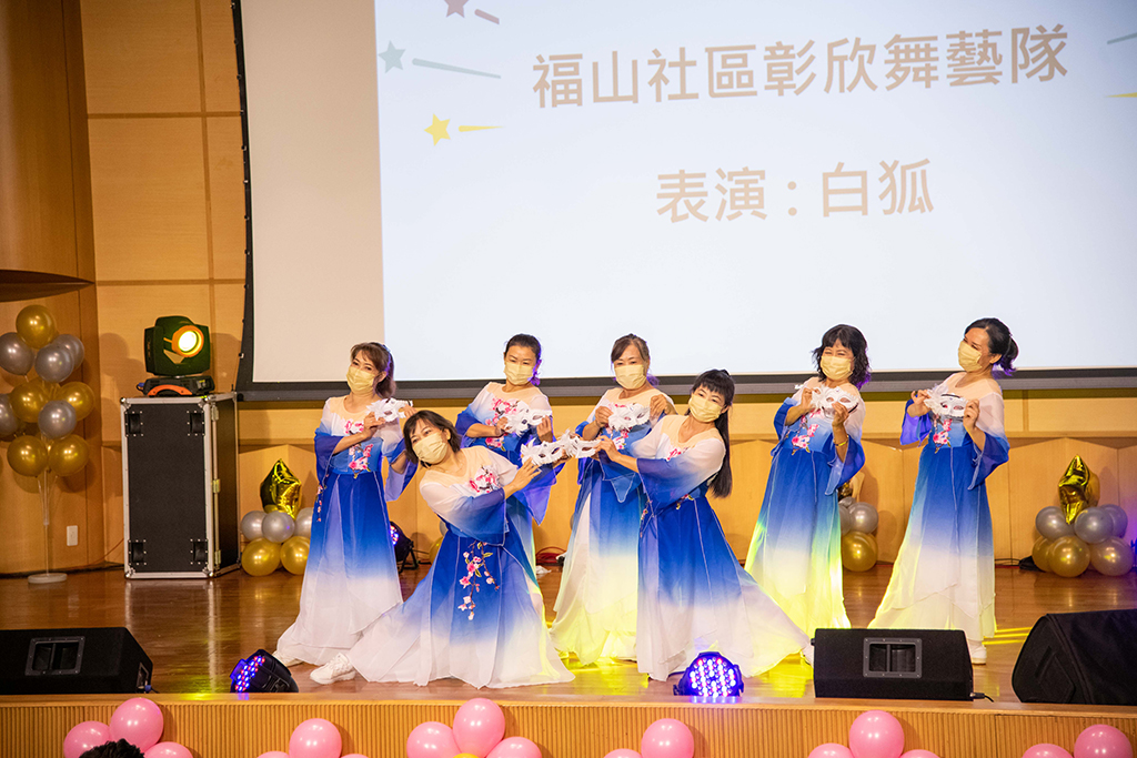 2021年冠軍隊伍「福山社區彰欣舞藝隊」今年受邀演出,以華麗具神祕感的面具及服裝演繹舞出優美的白狐舞蹈,十分吸睛。因活動日期接近中秋節,活動最後在大家溫馨大合唱《月亮代表我的心》歌曲中依依不捨的結束,大家相約明年還要再來參加。