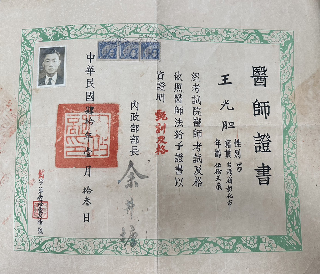 王光?醫師證書。