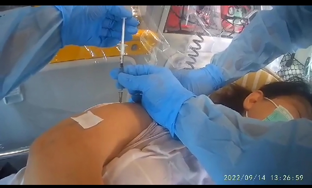 救護車上緊急施打腎上腺素(彰化縣消防局提供)