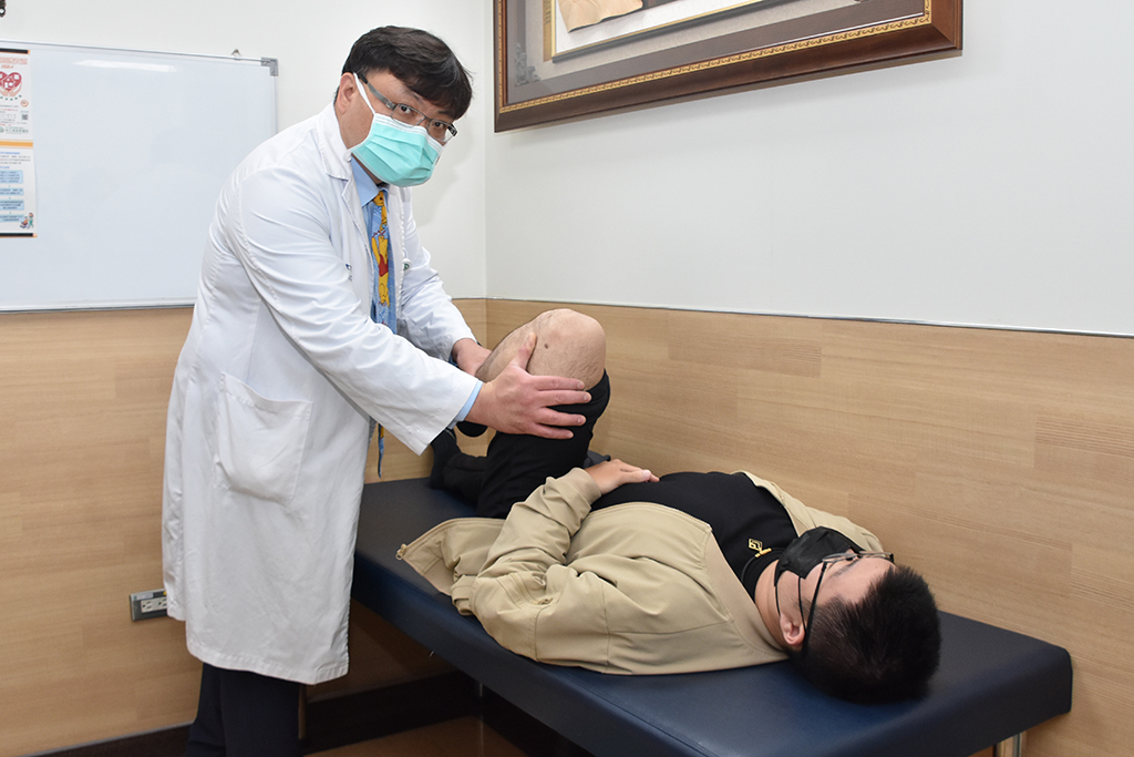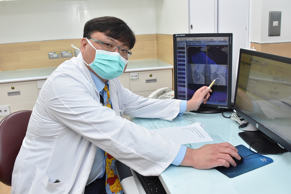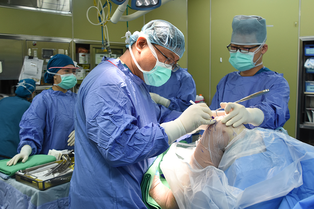 王偉勛醫師(左)為陳男進行軟骨層片移植手術。