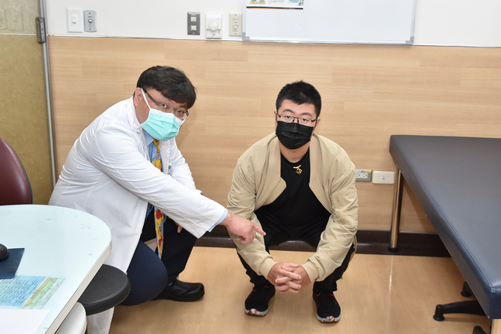 陳男接受「軟骨層片移植手術」後,可以輕鬆的蹲下。