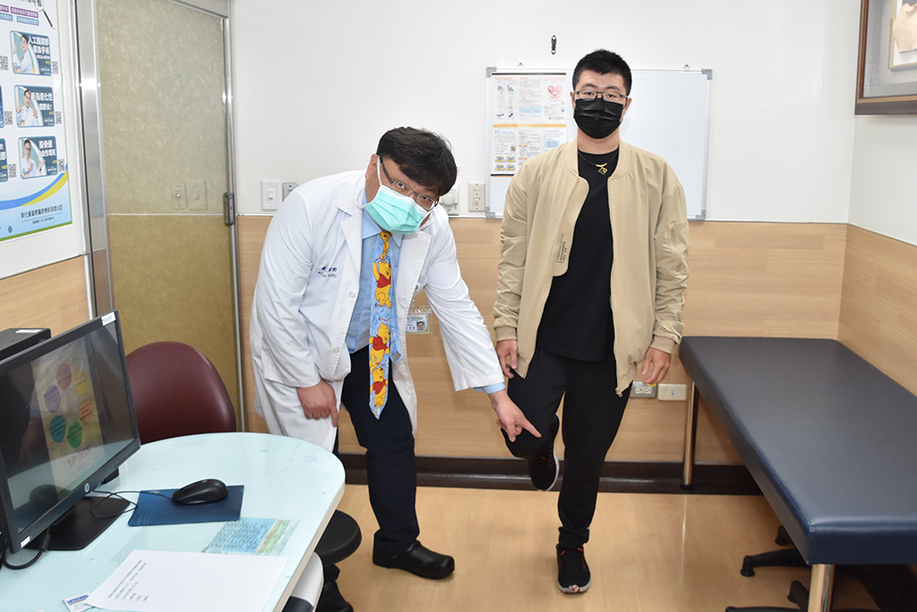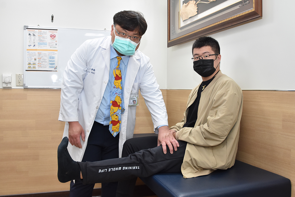 陳男接受「軟骨層片移植手術」後,左腳可以完全伸直。