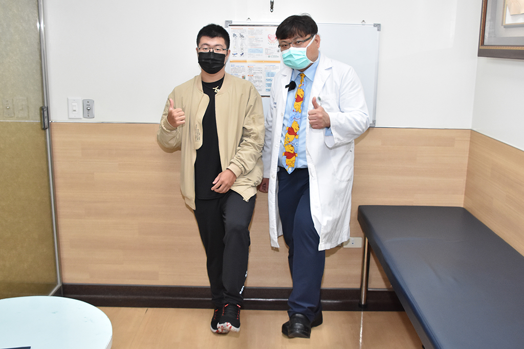 陳男於國小時參加棒球校隊,疑似在滑壘時受傷,造成左邊膝蓋非常不舒服,當時掛彰基王偉勛醫師的門診,王醫師建議是年紀還小、正在發育,暫時先不要做太激烈的手術或治療,怕會有長短腳的問題。大學時期,同學邀約打籃球,超過兩場就覺得膝蓋很不舒服,會有腫脹的問題,休息一下也沒有比較好轉;大學之後,再掛王醫師門診並接受手術。