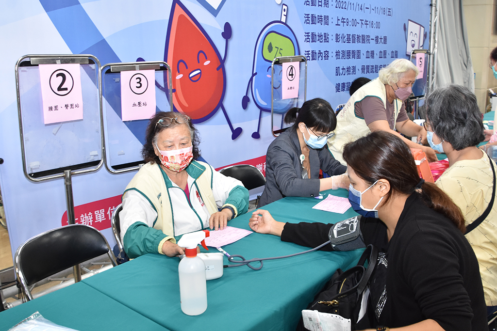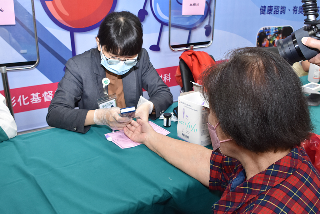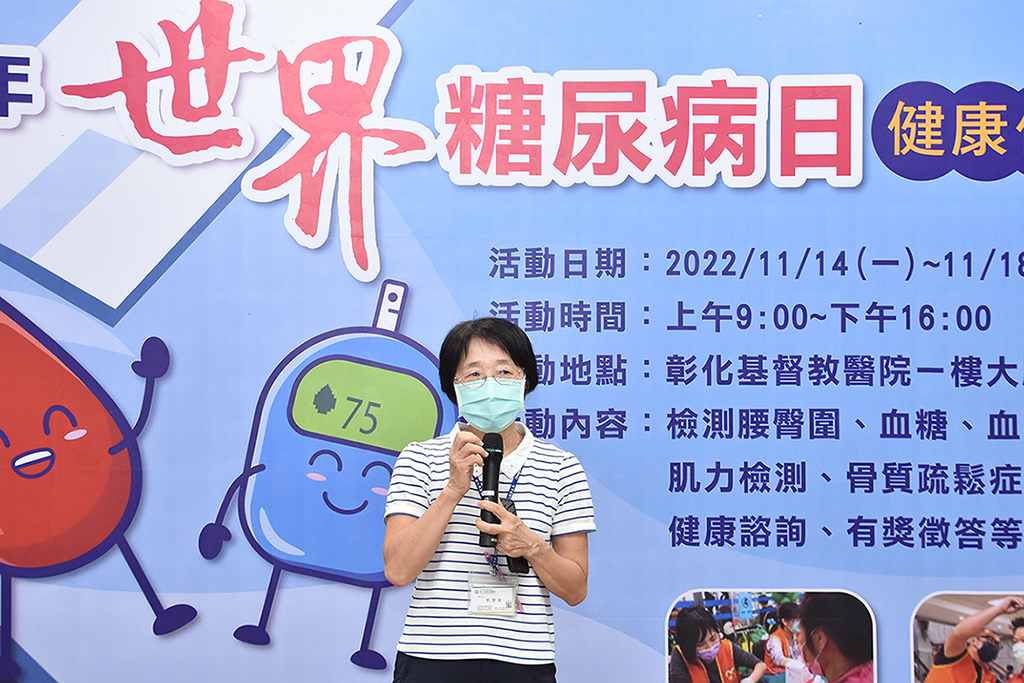 彰基醫學中心舉辦「111年世界糖尿病日」健康促進篩檢活動,讓民眾瞭解自身的身體狀況。