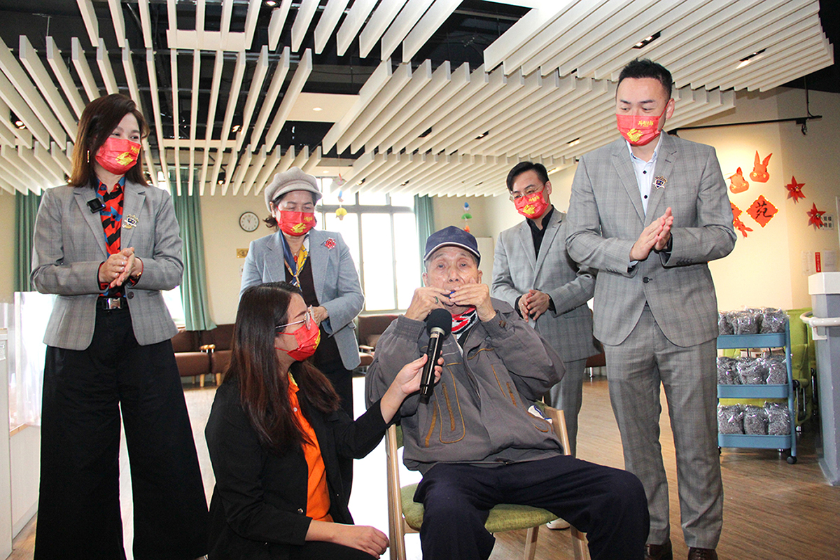 97歲黃喜爺爺,特別用珍藏60年的口琴即興演出,歡迎並感謝貴賓們不顧路途遙遠前來關懷。