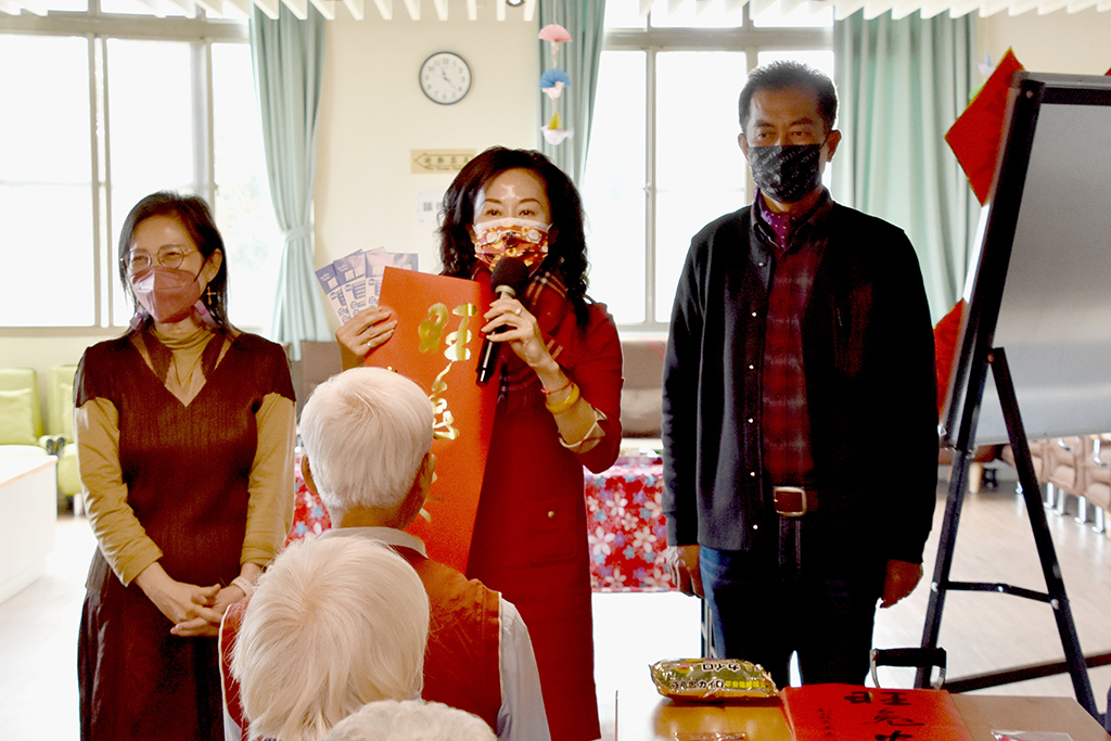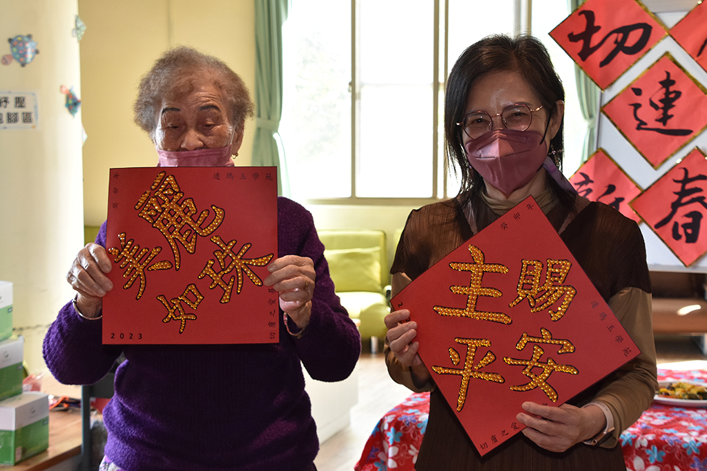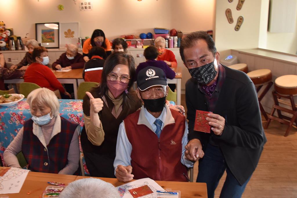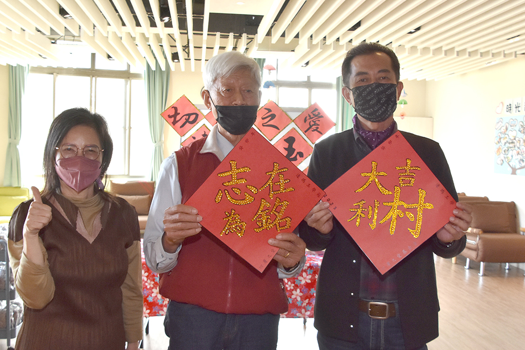 當天圍爐活動,切膚之愛基金會精心安排照顧團隊與失智長輩事先集思廣益,把鄉長的名字設計成春聯,透過活動致贈給貴賓;長輩們看到地方首長來關心他們,臉上洋溢著幸福的笑容,且殷殷交代來訪的貴賓一定要好好照顧身體,才能繼續照顧他們,現場洋溢著濃濃的溫馨與年節喜樂氣氛。