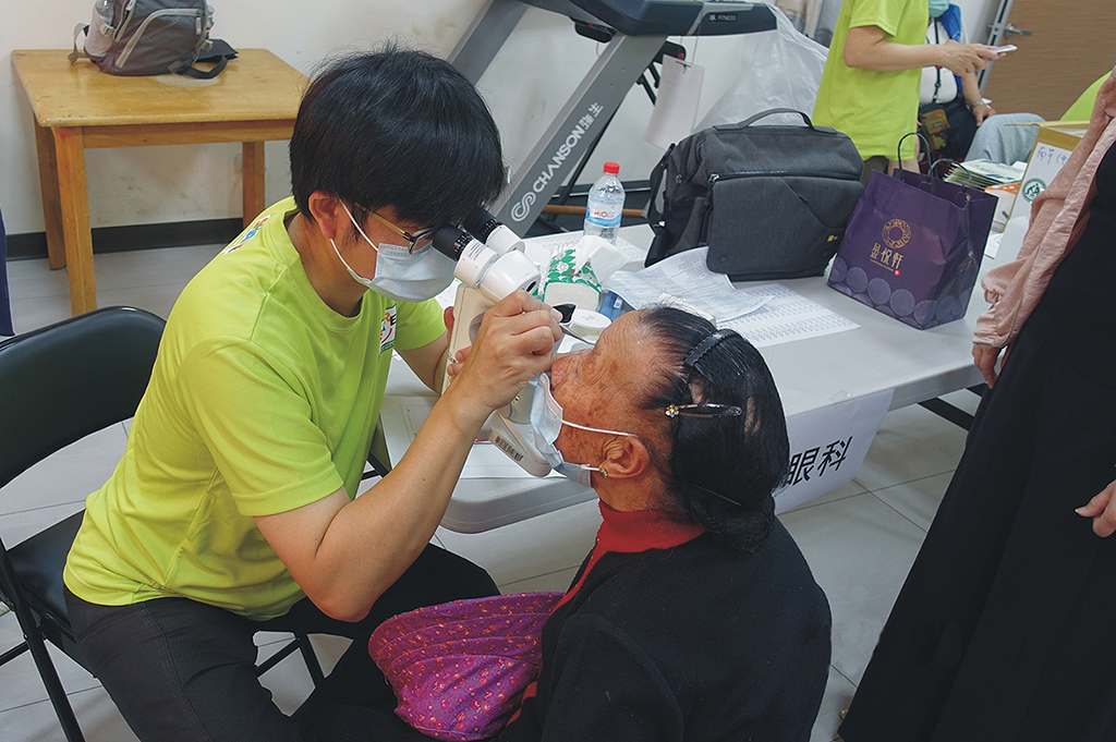 眼科部副主任吳建昇醫師,為長者檢查眼睛。