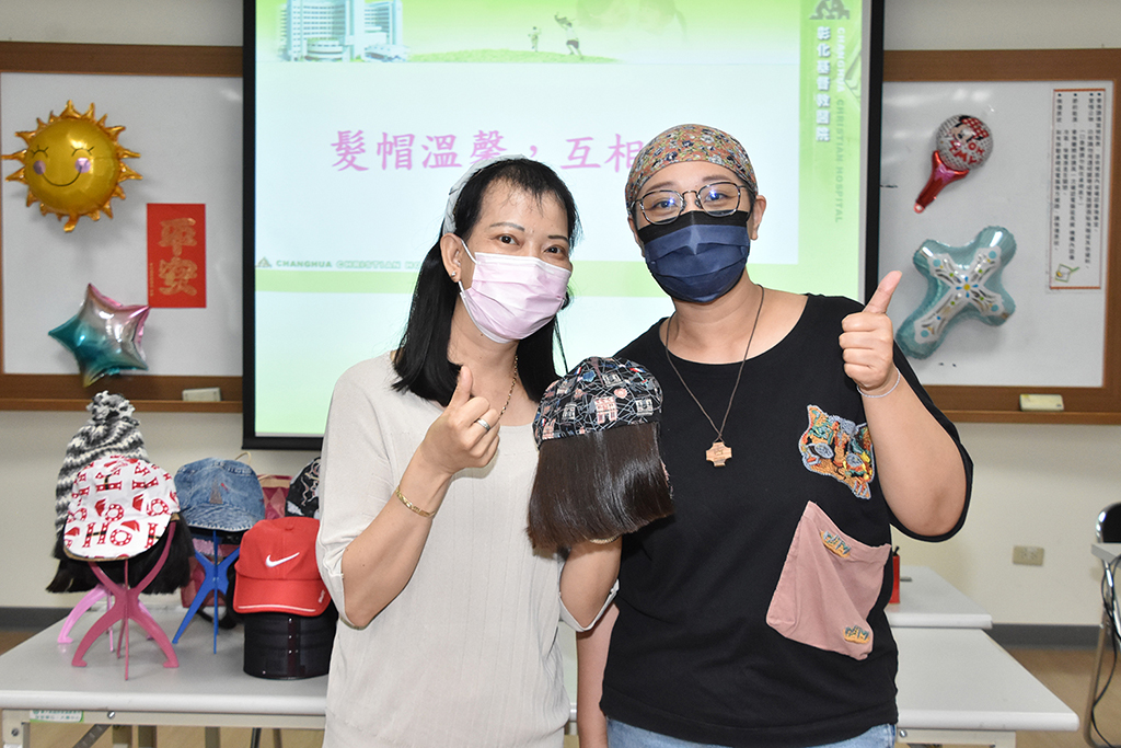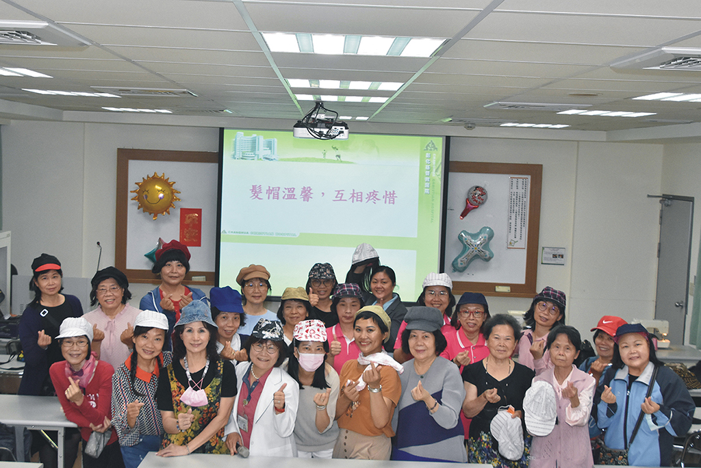彰基社區健康促進組舉辦「全國髮帽工作坊」傳承技藝課程,讓阿香為延續愛與幫助癌友的使命圓夢。