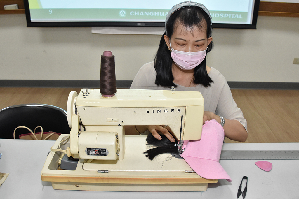 喜愛裁縫的48歲阿香(化名),與先生育有一子,4年前罹患乳癌接受化療期間,深受沒有頭髮的困擾,因此發明髮帽來重拾信心,而且不斷研發、改良各式的髮帽;此外,她更秉持同理心,將髮帽贈送給癌友。但,阿香的願望是將研發多年的髮帽技藝傳承下去,讓全台灣的癌友受惠;有鑑於此,彰基醫學中心社區健康促進組於27日下午,配合阿香不用治療的時間,舉辦「全國髮帽工作坊」傳承技藝課程,讓她為延續愛與幫助癌友的使命圓夢。