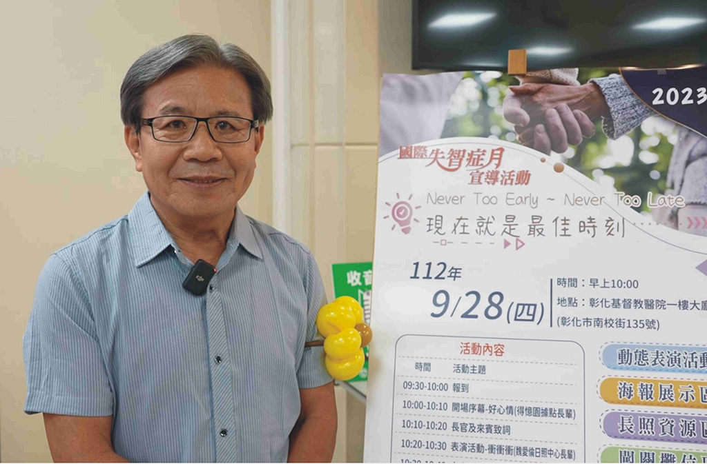 國際失智症協會公布2023年國際失智症月活動主題為「Never Too Early ~ Never Too Late」,台灣失智症協會譯為「現在就是最佳時刻」。強調失智症無論是在早期或晚期,我們都能夠透過積極的行動來延緩失智並及早預防。彰化基督教醫院失智症中心與切膚之愛基金會、彰化戀戀半線失智症協會共同舉辦失智症月活動,開場由得憶園失智據點長輩開場表演《好心情》,接續由魏愛倫學苑長輩表演具有動感《衝衝衝」》,長輩們的行動力表現出既使他們已失智了,但還能每天用好心情來面對失智症所帶來的影響;切膚之愛基金會更要用衝衝衝的行動力來呼籲社會大眾,從97年開始建構彰化縣成為失智友善環境的決心,迎接2025年超高齡社會的衝擊。魏愛倫學苑長輩也是已經退休的梁榮志牧師,帶領大家一起感謝禱告,讓在場的民眾非常感動,也讓長輩的演出完美告一段落。
