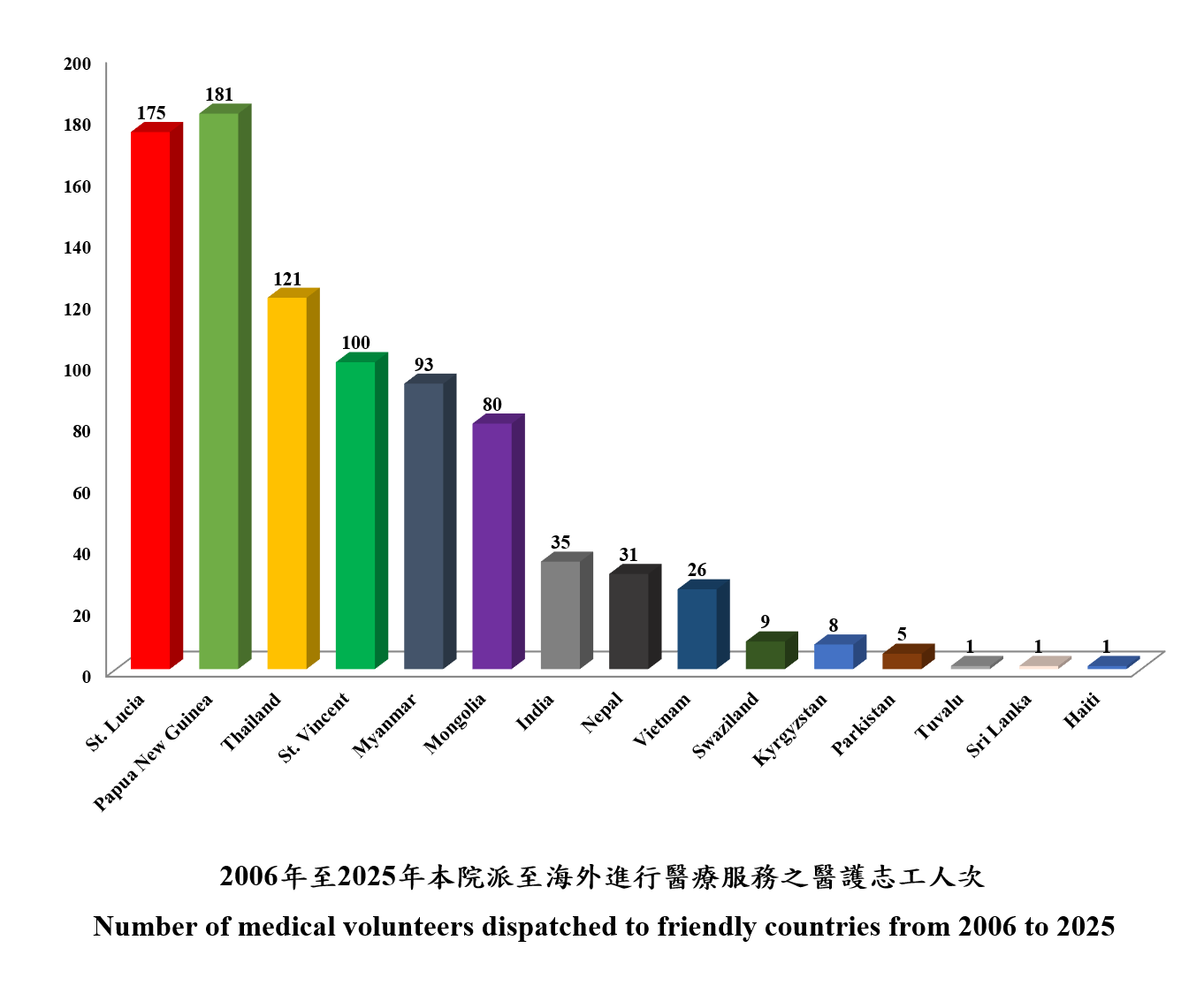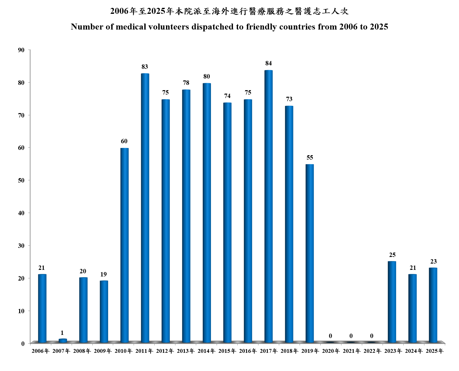 2006年至2025年本院派遣至海外進行醫療服務之醫護志工人次
