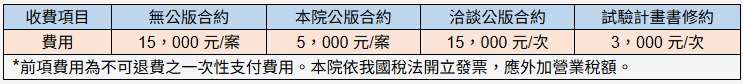 ♦因人力成本之考量,本院CTC自2021年4月1日起擬收取議約洽談費用,公告費用如下:
