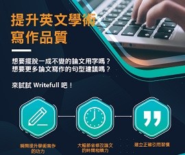 新進軟體 Writefull 英文學術寫作引導工具, 敬請踴躍利用!